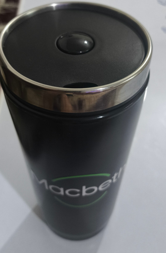 لیوان ۳۵۰ میلیلیتری از جنس استیل ضد زنگ در بیرون و PP در داخل با درب پیچی و دکمه فشاری منحصر به فرد برای جلوگیری از ریختن.
