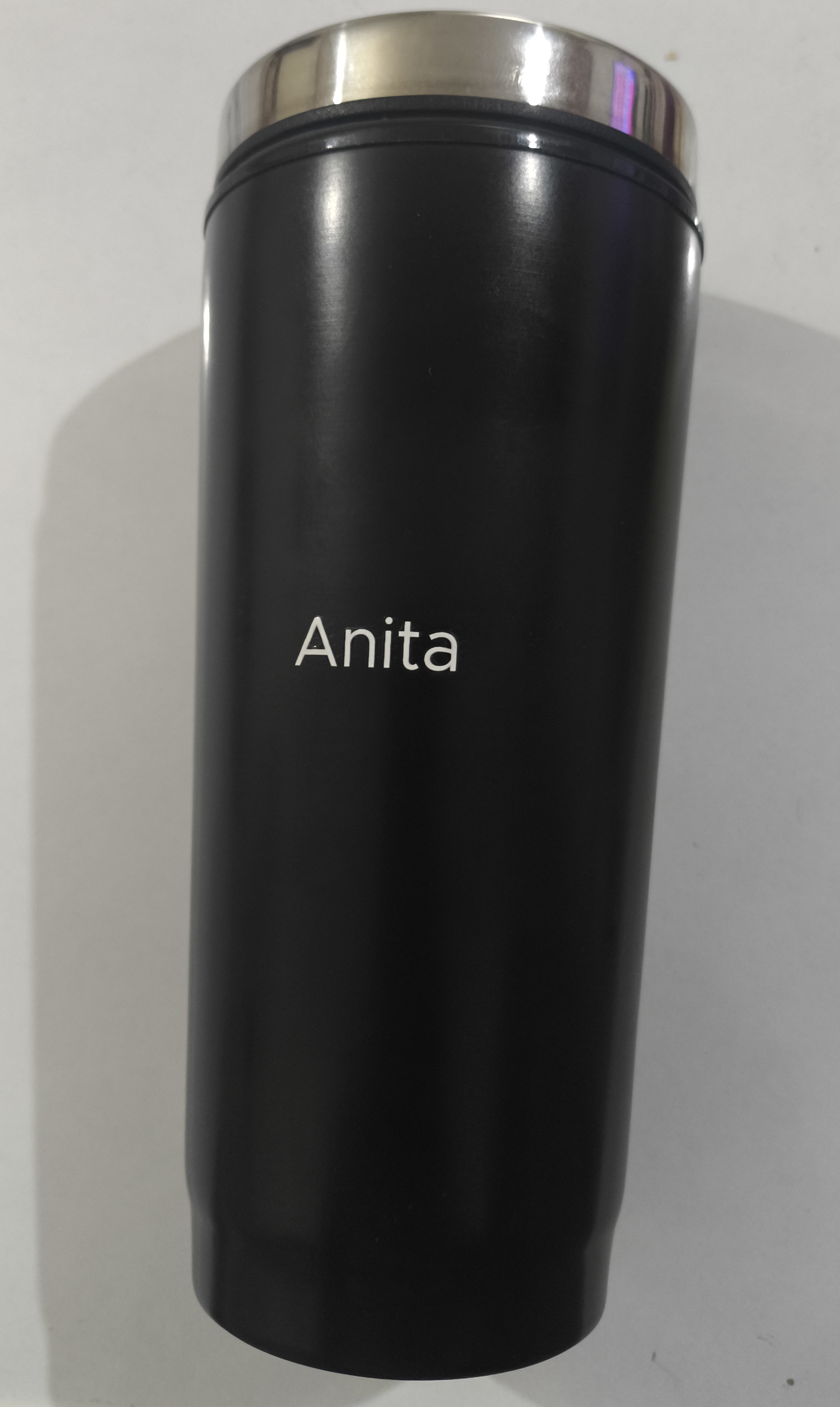 لیوان ۳۵۰ میلیلیتری از جنس استیل ضد زنگ در بیرون و PP در داخل با درب پیچی و دکمه فشاری منحصر به فرد برای جلوگیری از ریختن.