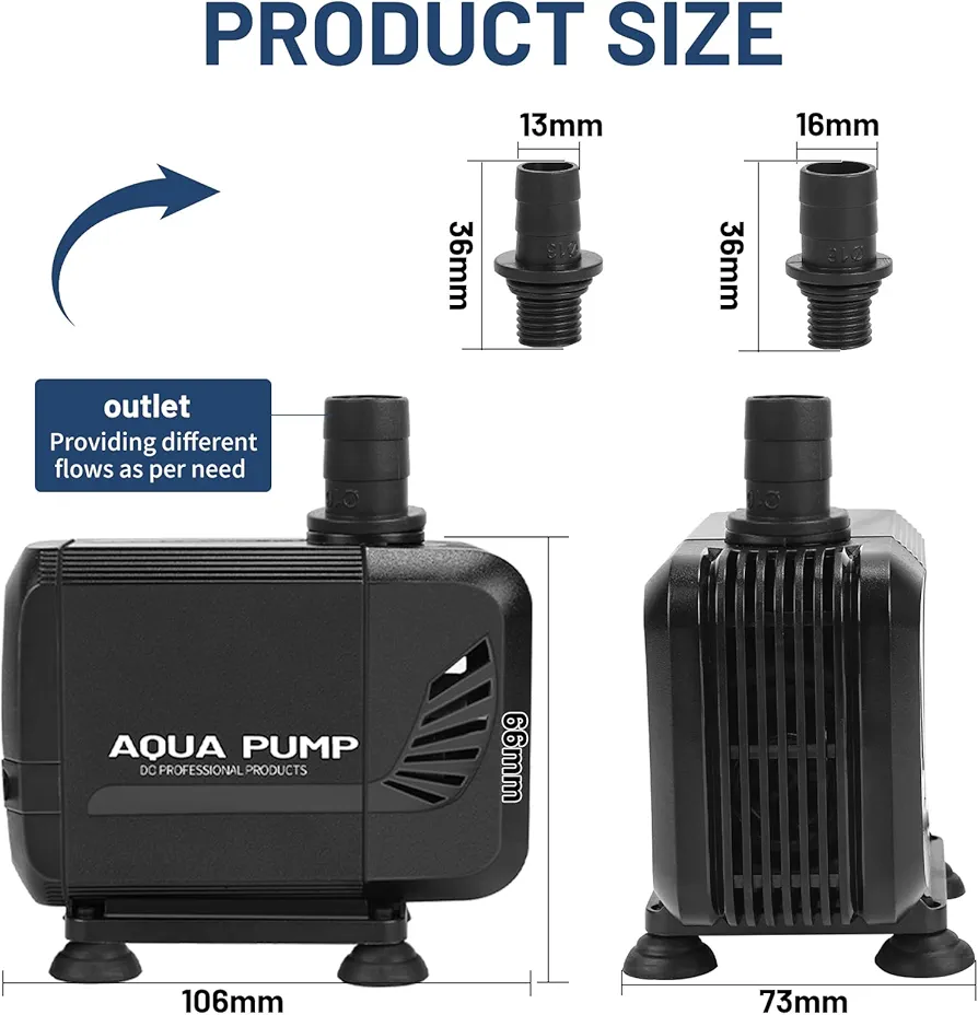 پمپ کاملا شناور 304-Aqua Pump HY برای آکواریومهای متوسط حوض های کوچک باغهای آبی و آبنماهای رومیزی مناسب است. 304-HY که قادر به حرکت 400 گالن در ساعت است یک انتخاب عالی برای کاربردهای آب شیرین و آب شور ارائه میدهد سری NP کوچک و در عین حال قدرتمند صرفه جویی در مصرف انرژی و قرارگیری همه کاره را ارائه می دهد در حالی که طراحی جمع و جور و خروجی کم صدا 304-HY را به پمپ یک مرحله ای برای تمام نیازهای آبی شما تبدیل میکند.