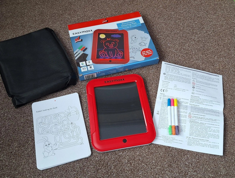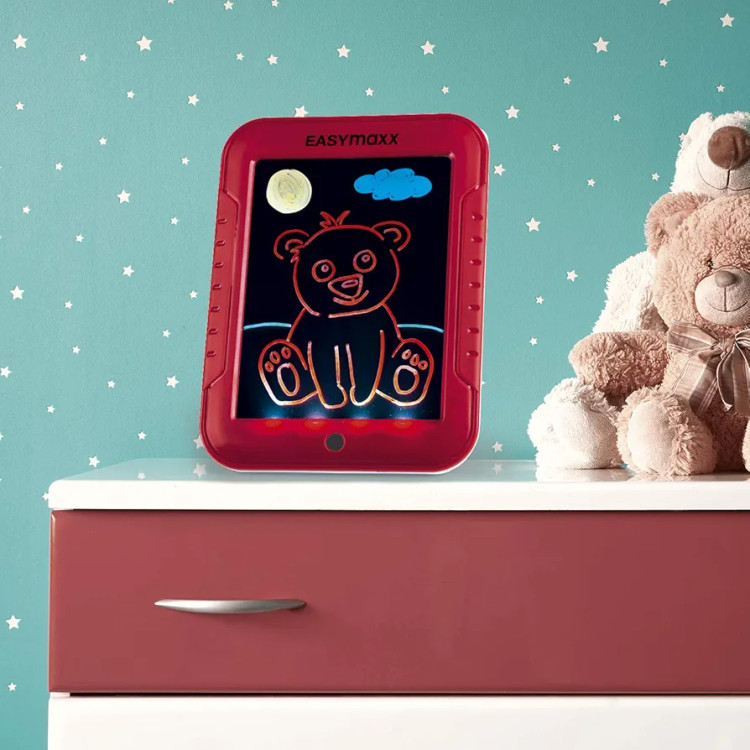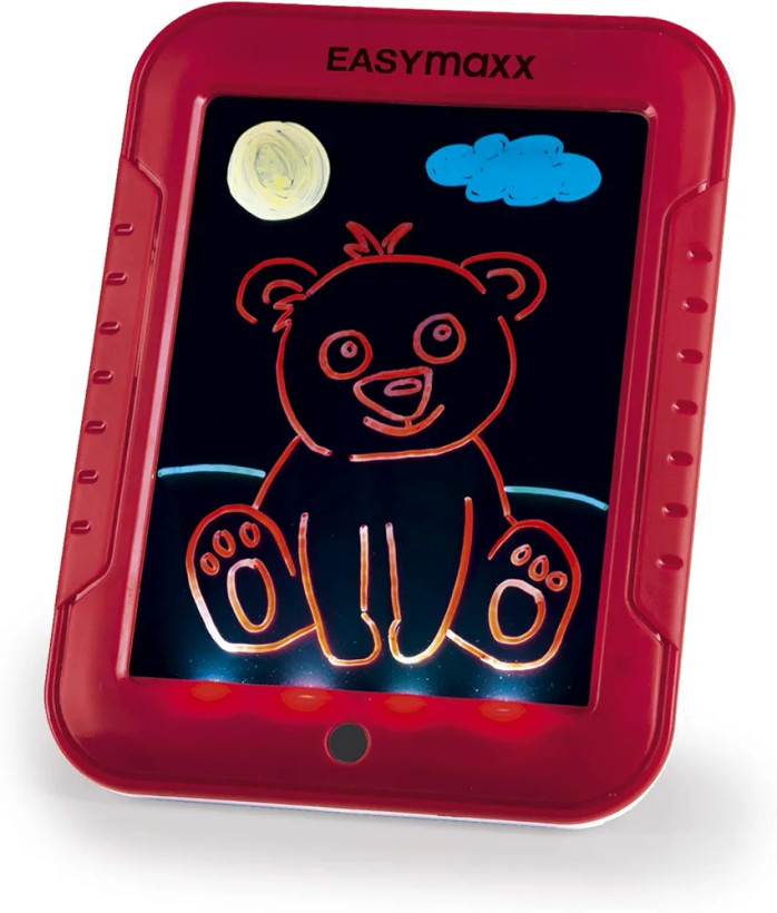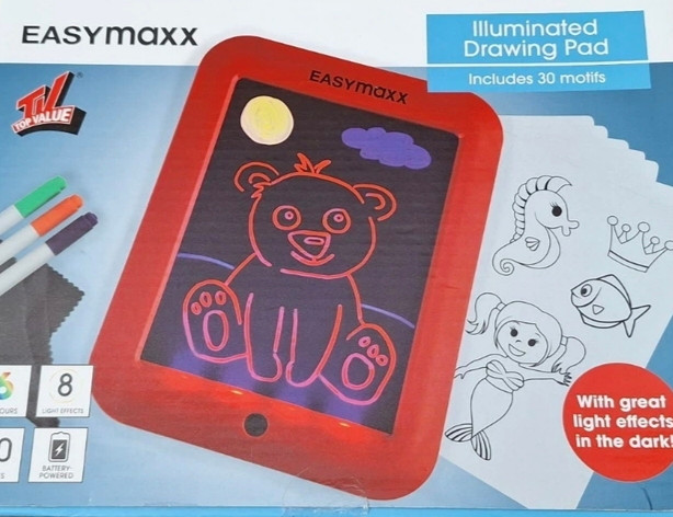 هنرمندان بزرگ و کوچک اکنون میتوانند لذت یادگیری و نقاشی را با پد نقاشی نورانی EASYmaxx کشف کنند. این تخته نقاشی مبتکرانه با طراحی تبلت، 30 طرح روی 15 شابلون و 3 مداد رنگی نئونی دوتایی با 6 رنگ عالی ارائه میدهد که تمام الزامات یادگیری شاد و رنگارنگ و لذت نقاشی را برآورده میکند