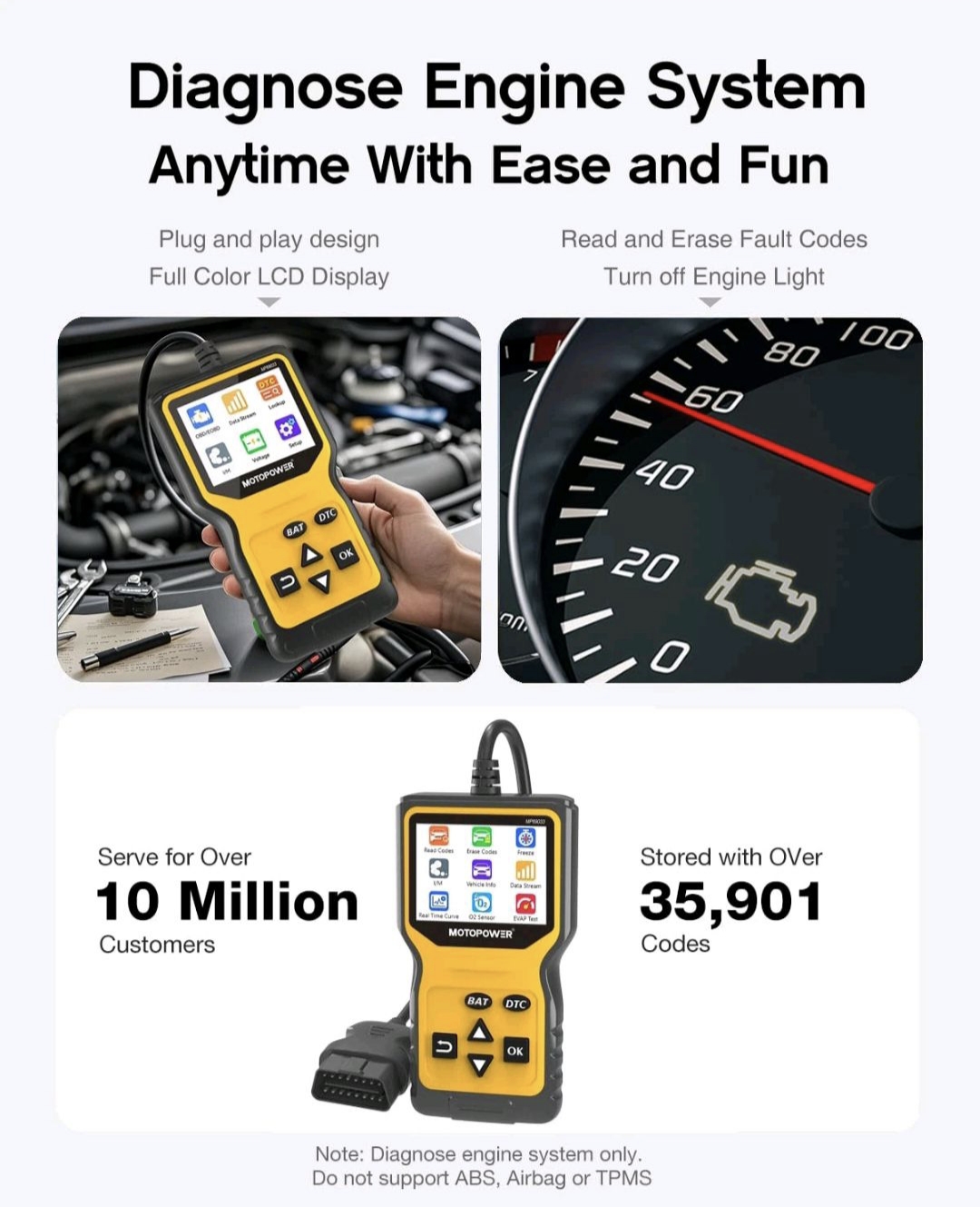 قابلیت اتصال و استفاده برای هر راننده - بدون نیاز به برنامه یا وایفای. بدون نیاز به باتری یا شارژر اضافی. کابل بلند به فضاهای تنگ میرسد، در حالی که منوی بصری بلافاصله پس از خارج شدن از جعبه کار میکند. ایدهآل برای کسانی که خودشان کار میکنند و مکانیکها.