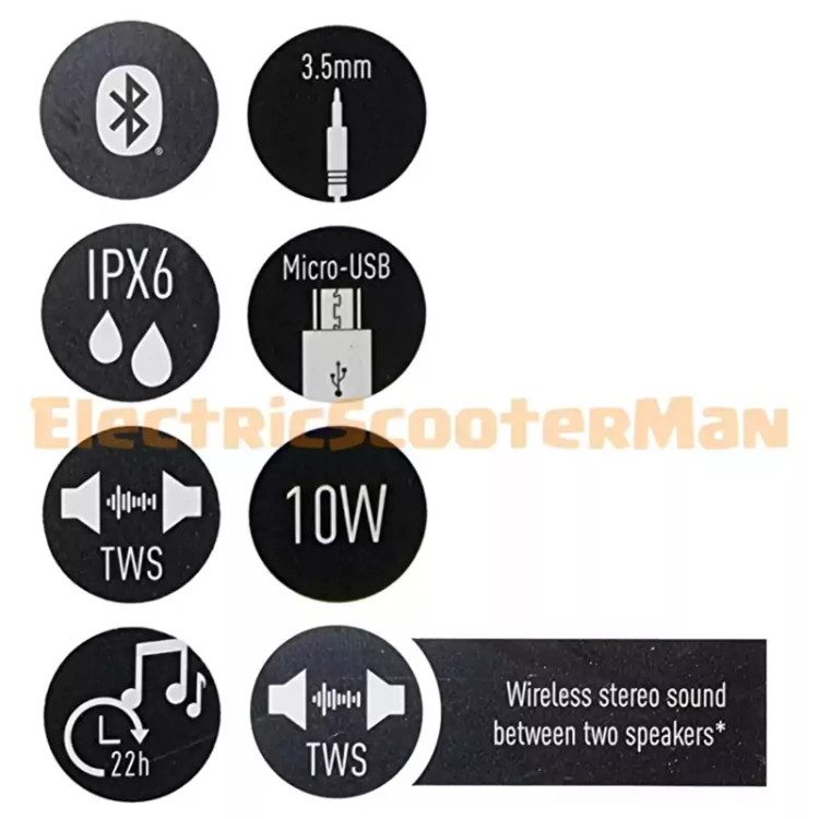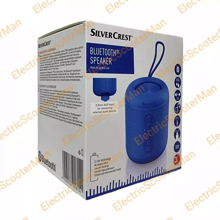 اسپیکر بلوتوث SilverCrest مدل slm5A1 کاملا نو با جعبه برند معتبر و با کیفیت طراحی شده در آلمان فروشنده بریتانیا سهام انگلستان با عملکرد True Wireless Stereo (TWS) برای دریافت صدای استریو بدون سیم یا کابل استفاده کنید. ایده آل برای استفاده در فضای باز پخش موسیقی بی سیم (Bluetooth(R)) باتری قابل شارژ لیتیوم یونی با ظرفیت 4000 میلی آمپر ساعت برای حداکثر 22 ساعت موسیقی ورودی 3.5 میلی متری AUX برای اتصال دستگاه های صوتی خارجی ویژگی ها بلوتوث، IPX6 اندازه: 8.5 در 10 سانتی متر وزن: حدود 400 گرم بند مچی کاربردی برای حمل و نقل آسان ضد آب طبق استاندارد IPX6 - محافظت شده در برابر جت های آب شامل کابل شارژ میکرو USB و کابل AUX برد بلوتوث (R): تا 10 متر خروجی: 10 وات RMS