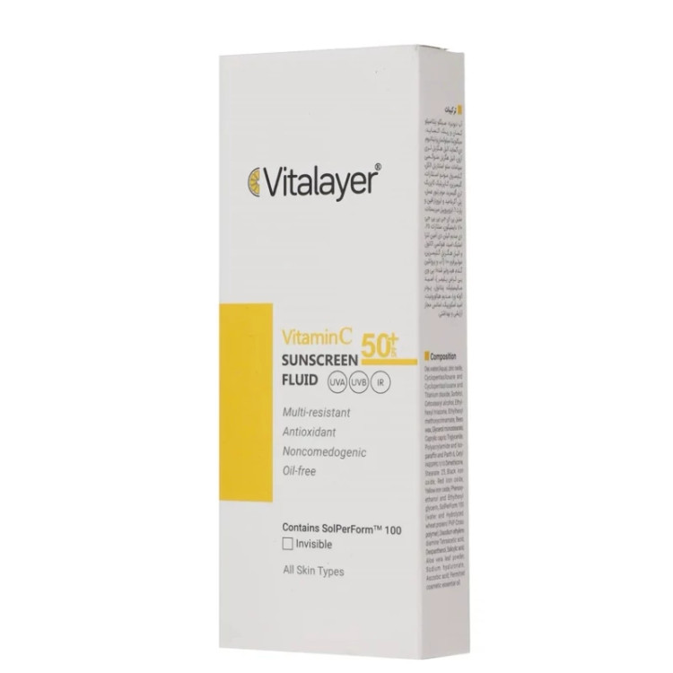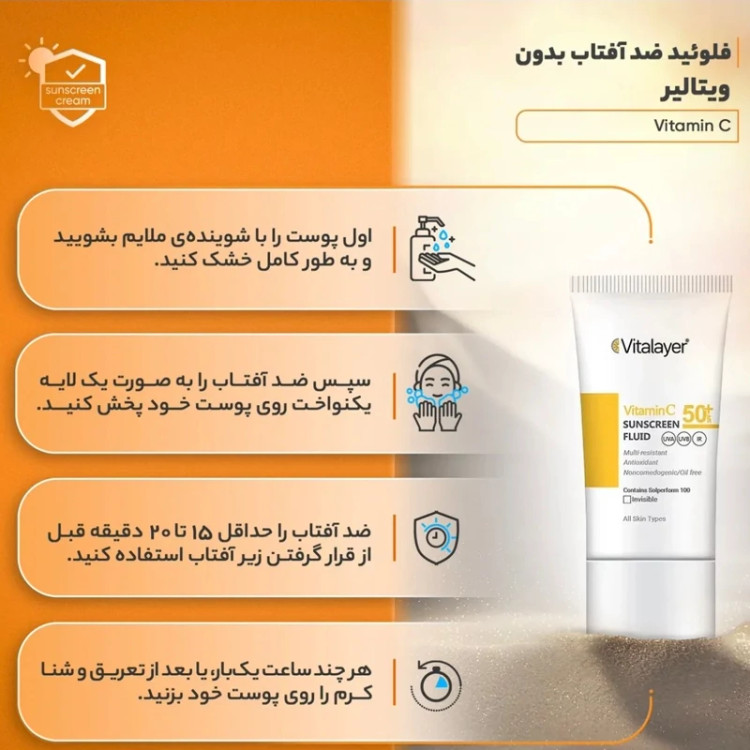فلوئید ضد آفتاب بی رنگ ویتالیر 50 SPF مدل Vitamin C مناسب انواع پوست حجم 50 میلی لیتر