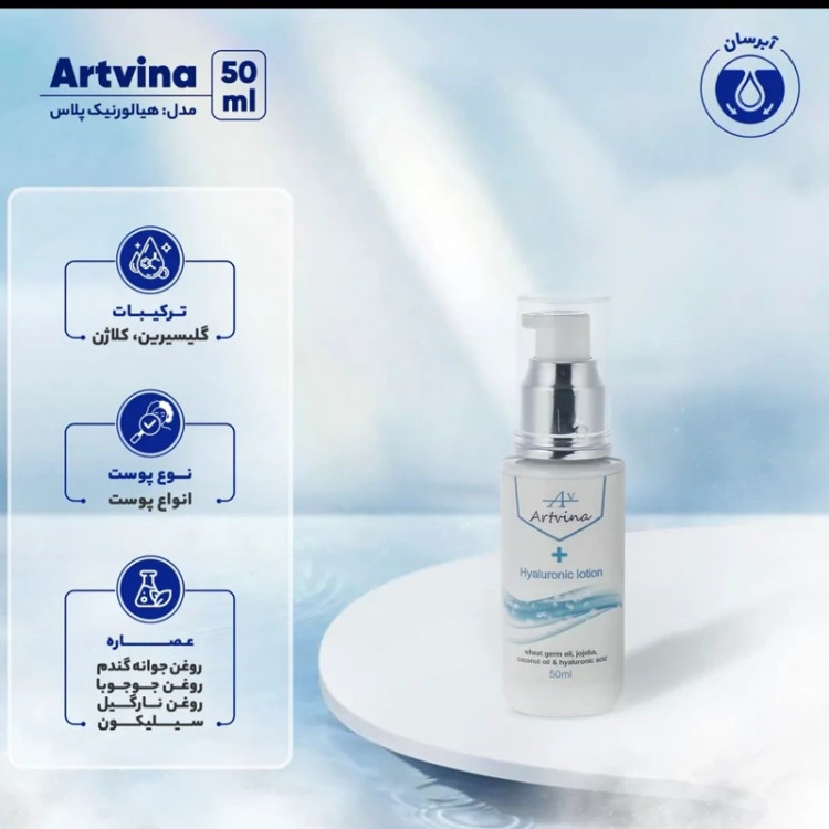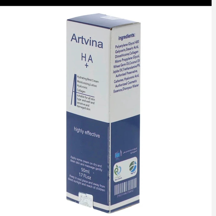 کرم آبرسان آرت وینا مدل هیالورنیک ،پلاس مناسب انواع پوست حاوی روغن جوانه گندم و روغن جوجوبا افزایش دهنده شفافیت و طراوت پوست روغن نارگیل کلاژن و حاوی گلیسرین حجم 50 میلی لیتر فرمول شده با استانداردهای کمسیون اروپا آب رسان قوی و افزایش شفافیت و طراوت پوست و تسکین دهنده و کمک به کاهش التهابات پوستی و افزایش استحکام پوست با تقویت تولید کلاژن و جلوگیری از ایجاد چین و چروک و خشکی پوست و محافظت از پوست در برابر نور خورشید و آلودگیهای محیطی ترکیبات این محصول عبارتند از روغن جوانه گندم روغن جوجوبا روغن نارگیل کلاژن گلیسرین پلی اتیلن گلایکول 400 روغن سیلیکون اسید استئاریک منو پروپیلن گلیکول تری اتانول آمین 99 درصد و... که همگی خاصیت تغذیه کننده پوست را دارند کرم آبرسان هیالورونیک پلاس آرت وینا حس زیبایی و جوان ماندن ظاهر پوست را به شما می دهد.